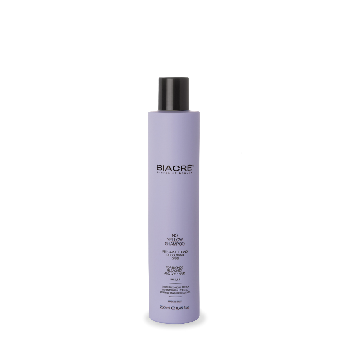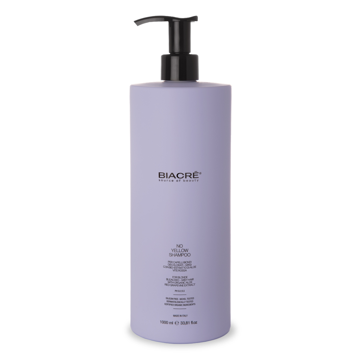 Shampoo Antigiallo potenziato, contiene uno speciale pigmento violaceo che neutralizza gli indesiderati riflessi giallo/arancio. Indicato su capelli biondi, decolorati, grigi o con mèche. Contiene Estratti Bio di Aloe Barbadensis e Vite Rossa, con azione idratante e antiossidante. Lascia i capelli soffici e luminosi.